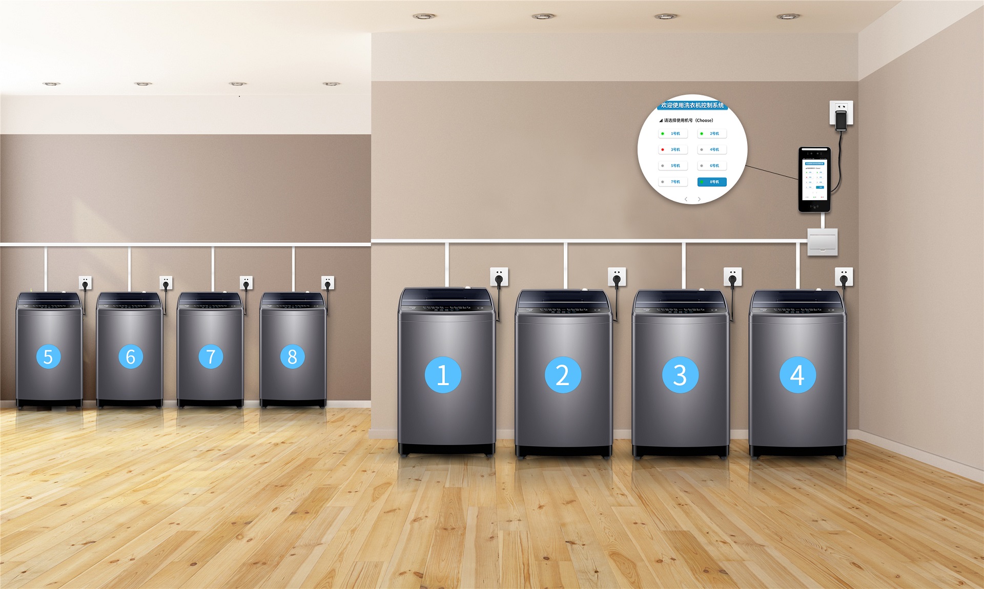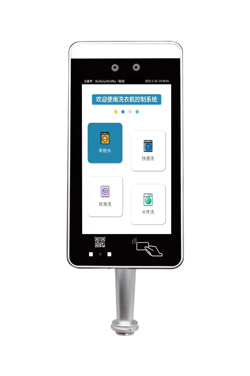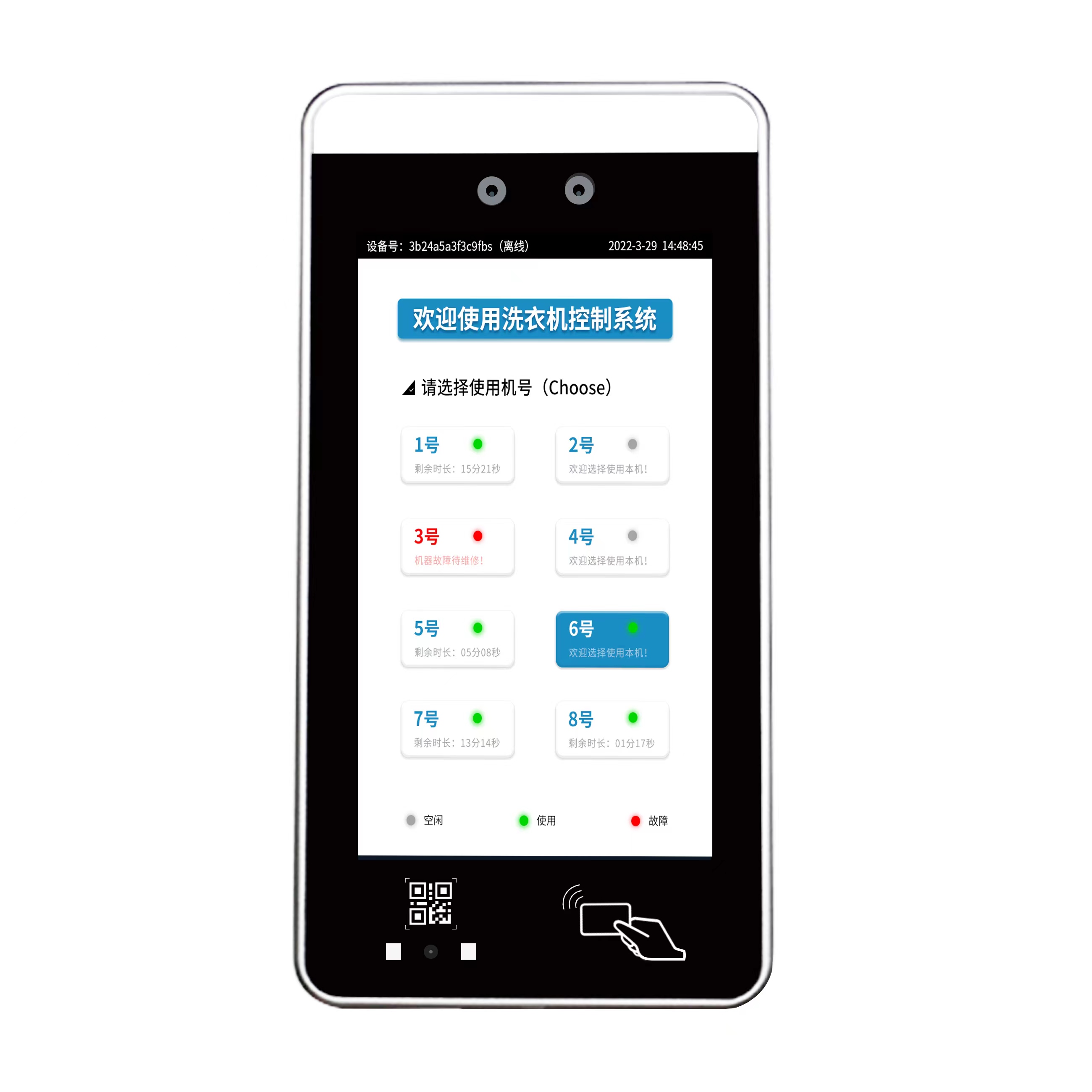 c、“安卓人臉平板控制器”方案:一臺人臉平板可以控制8臺洗衣機,人臉平板主頁上顯示有1-8號洗衣機8個按鈕,按鈕上會顯示洗衣機的狀態,“灰色”表示“空閑”,“綠色”表示“使用中”,“紅色”表示“故障”,選擇空閑的洗衣機,點擊進入,有4個洗衣模式可選:單脫水、快速洗、標準洗、大件洗,確認好要用的模式,然后選擇支付方式(刷卡、刷臉、掃碼),支付成功后洗衣機啟動對應的工作模式,直至洗衣模式結束。