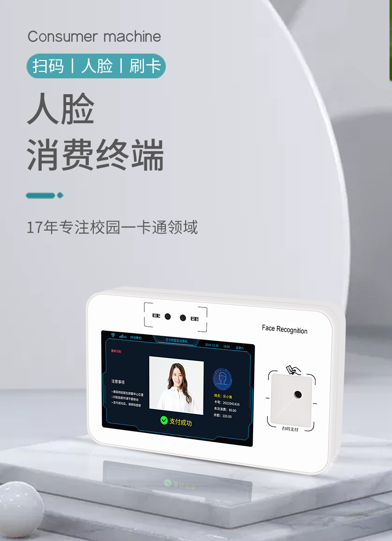 刷臉識別消費系統的開啟正是應用智慧食堂。主要以人臉識別消費設備為主,在人臉消費的基礎上還搭配IC卡、掃碼等多種結算支付方式,在食堂就餐結算效率上得到進一步的提升。